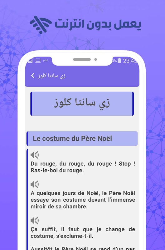Vì lý do này, thân mến, chúng tôi đã lập trình ứng dụng này cho mọi người muốn nâng cao trình độ tiếng Pháp của mình, vì ứng dụng chứa một số lượng lớn các câu chuyện Pháp được dịch sang tiếng Ả Rập một cách chính xác và đẹp mắt, nơi bạn sẽ có thể học từ vựng và các công cụ liên kết và cách kết hợp và phối hợp các câu và Suy nghĩ.