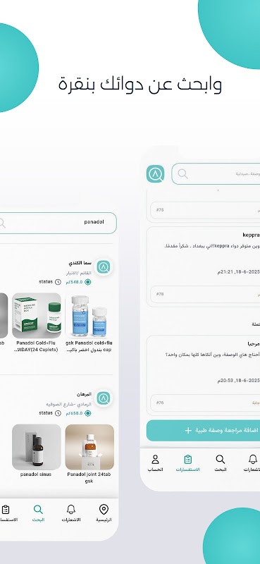Ứng dụng có hàng nghìn hiệu thuốc trên khắp Iraq, cho phép bạn tìm kiếm và tìm thấy thuốc của mình tại hiệu thuốc gần nhất chỉ bằng một cú nhấp chuột.