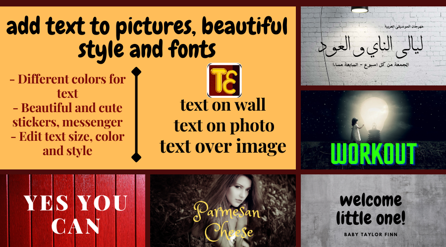 If you are looking for a simple way to add text to pictures or words on pictures with stickers or you love reading book quotes, love on social networks and graffiti and want to add quotes for pictures download Add Text to Photo Text Editor app. All in one app, you can keep the best photo text input in your hands!