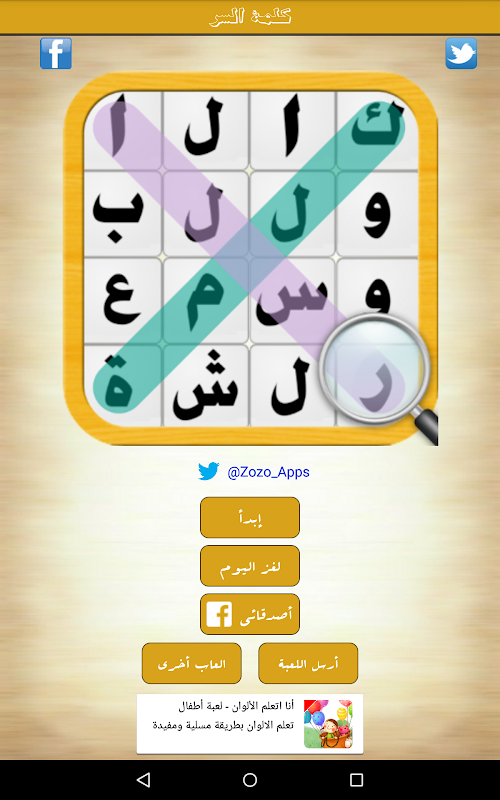 لمتابعة جديدنا وللتواصل معنا ولملاحظاتكم تابعونا على التويتر @Zozo_Apps
