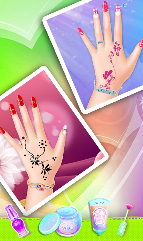 لعبة مناكير الاظافر للبنات (العاب طلاء الاظافر) تعتبر من العاب البنات الاكثر شهرة , اليدين الجميلة اجعليها انيقة ولامعة بوضع الكريمات والمرطبات لليدين بعدها استخدمي اي مناكير ملون وجميل وبعدد من الألوان للاظافر وضعي الرسومات و الحنة على اليد لتبدو في غاية الروعة اللعبة تتميز بمراحل متعددة يمكنك في كل مرحلة تزيين الاظافر وتزيينها بالنقوش الحناء و طلاء الاظافر