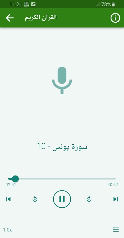 Ứng dụng của Qur’an quý tộc hoàn chỉnh với giọng nói của người ngâm thơ Muhammad Ayoub cho phép bạn nghe các surah của Qur’an một cách dễ dàng để bạn có thể thưởng thức đọc lại Qur’an với chất lượng âm thanh cao