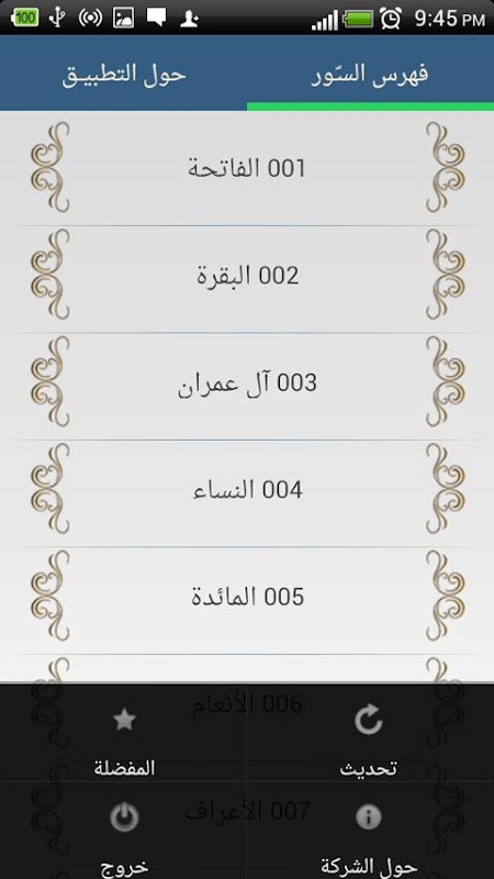 امكانية اضافة اي سورة الى قائمة المفضلة للوصول لها بشكل سريع في اي وقت باستخدام زر القائمة.