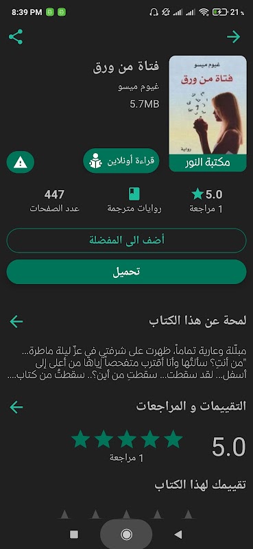 - يمكنك وضع تقييم ومراجعة للكتاب داخل التطبيق ورؤية باقي مراجعات المستخدمين