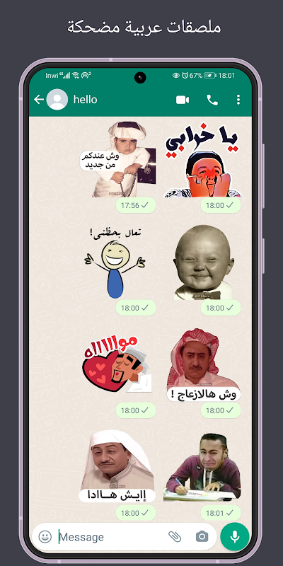 - Kết nối với nhãn dán tiếng Ả Rập vui nhộn hoặc nhãn dán tình yêu cho WhatsApp