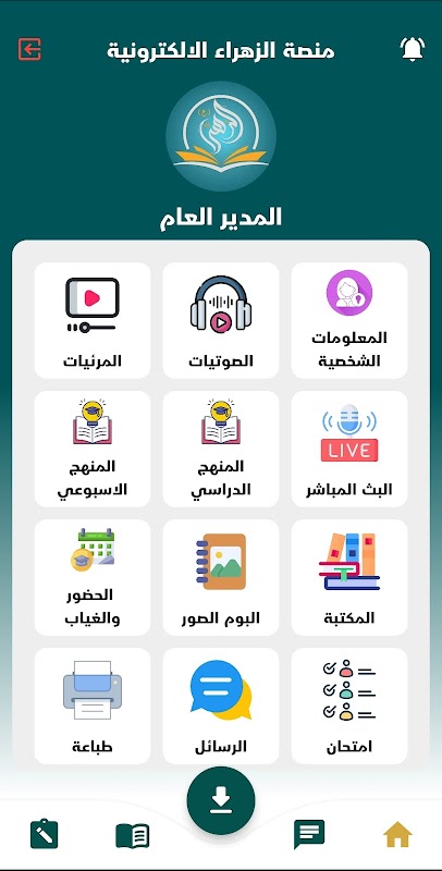 Nền tảng Al-Zahraa, cầu bình an cho cô ấy, tìm cách cung cấp một môi trường giáo dục kích thích giúp học sinh đạt được mục tiêu học tập của mình một cách hiệu quả và thoải mái nhất bằng cách cung cấp các bài học tôn giáo trực tuyến tại chủng viện và tiếp cận giáo dục với tất cả lợi ích của việc học trực tiếp mà không cần phải tham dự hoặc đi du lịch.
