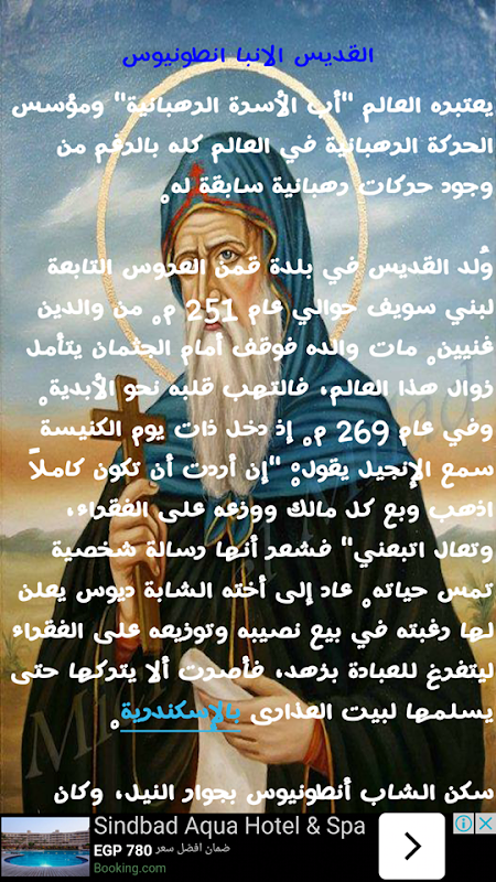 تطبيق موسوعة اقوال الاباء المقرؤة والمسموعة ، يحتوي علي مجموعة كبيرة جدا من الاقوال والتعاليم الروحية الرائعة لاباء الرهبنة والقديسين وهو كتاب كامل عن بستان الرهبان