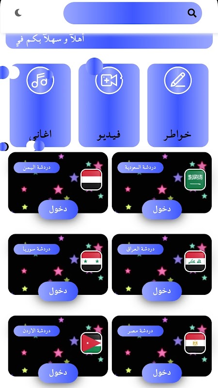 قسم الدردشات يحتوي على عدة غرف دردشات جماعية .
