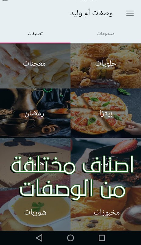 ستجد في هذا التطبيق الوصفات مرتبة على حساب الأقسام التالية :