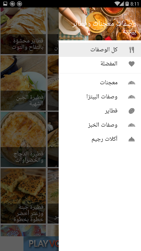 يحتوي التطبيق على العديد من وصفات المعجنات و فطائر وهذه بعض منها :