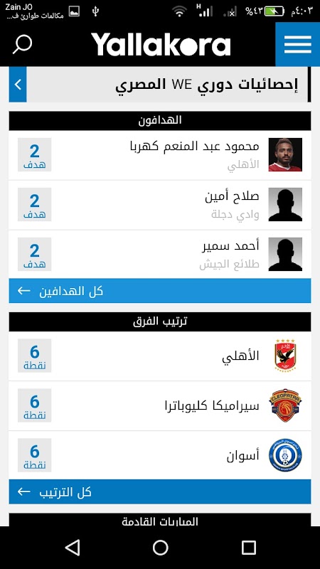 Ứng dụng Yallakora chứa những phát triển mới nhất trong giải đấu châu Âu, Ai Cập và Anh.