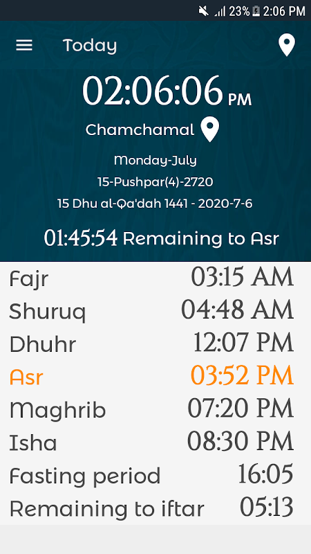 Thời gian cầu nguyện là một ứng dụng Android dành cho người Hồi giáo trên toàn thế giới. Sử dụng đơn giản, nó cung cấp thời gian cầu nguyện chính xác bằng cách sử dụng vị trí của điện thoại (vĩ độ và kinh độ) dựa trên các quy ước khác nhau (hơn 25) và cũng có thời gian tĩnh cho các khu vực cụ thể và hướng của Qibla, các địa điểm nhà thờ Hồi giáo xung quanh bạn, các sự kiện Hồi giáo, Ramadan và thời gian của đêm và ăn chay.