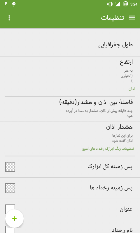 -اوقات شرعی به همراه امکان فعال کردن اذان برای هر وقت شرعی