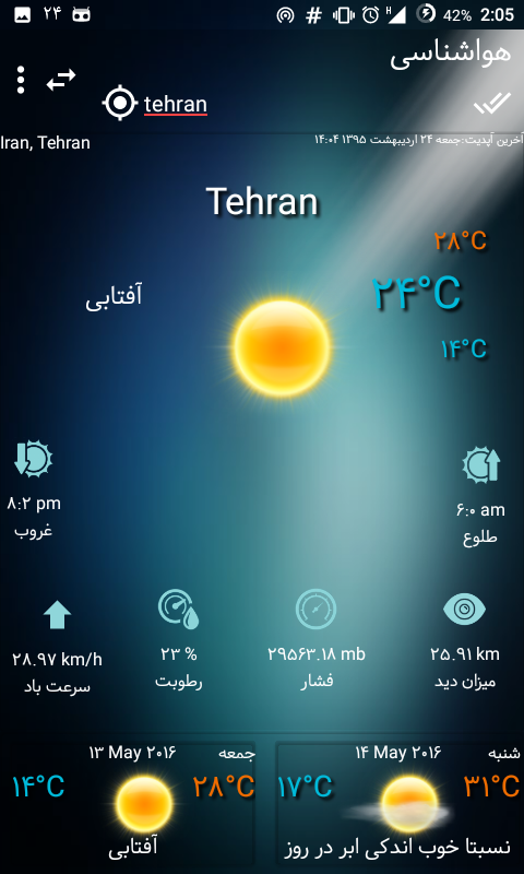 یاد آور و تقویم فارسی-هواشناسی نسخه رایگان