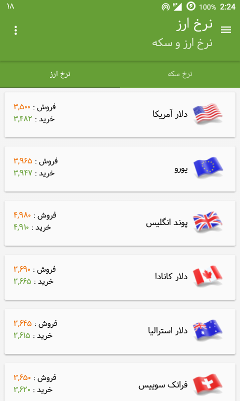 -دارای قابلیت گرفتن نرخ روز همه ی ارز ها و سکه ها