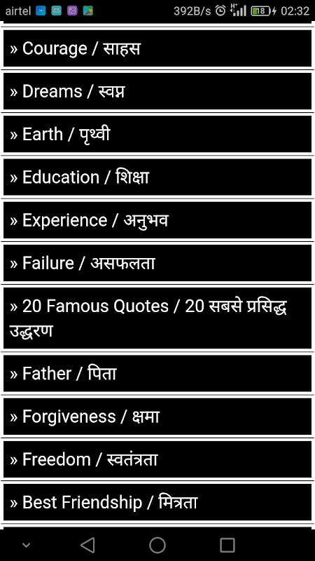 Anmol Vachan ứng dụng có dấu ngoặc kép tiếng Hin-ddi lớn từ những tác giả khác nhau trong nhiều loại. Đây là toàn bộ dấu ngoặc kép động lực và cảm hứng trong tiếng Hin-ddi. Đọc báo giá và làm giàu cho cuộc sống của bạn với sự lạc quan, hy vọng, làm việc theo nhóm, lãnh đạo, lòng dũng cảm và thành công.