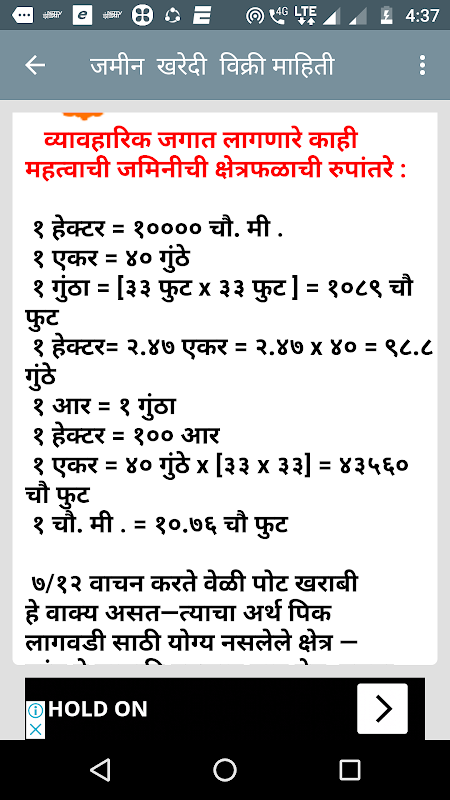 Ứng dụng này có chứa thông tin về cách mua và bán đất bằng ngôn ngữ Marathi