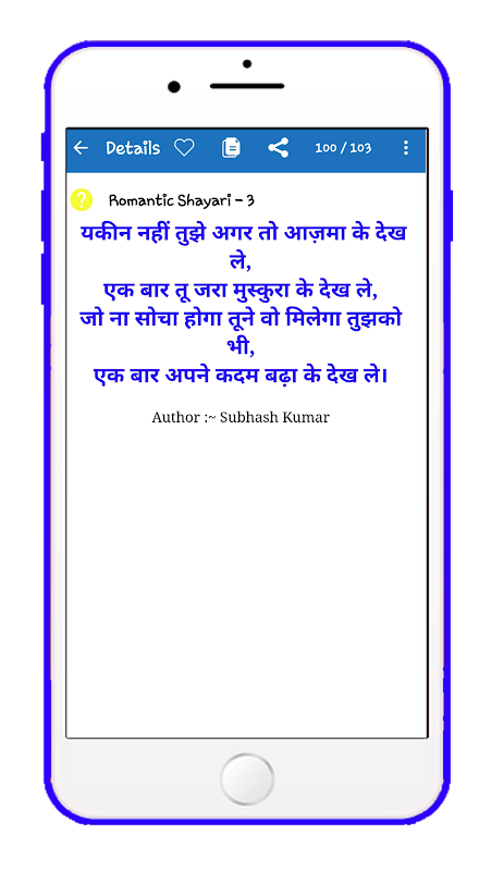 In Hindi me shayari application you will get to see and read more than one crore shayari, as well as this application has been made keeping in mind the youth, in this application you will get to read some such shayari like romantic shayari funny shayari sad shayari Miss you shayari love shayari bewafa shayari friend shayari girlfriend shayari boyfriend shayari etc.