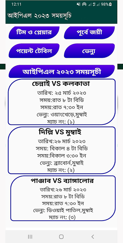 আইপিএল ২০২৩ সময়সূচী ও দল আছে এই অ্যাপে।