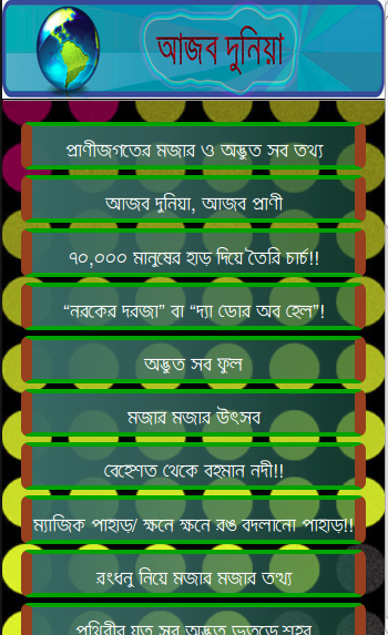 আমরা স্বভাবতই এই রকম অদ্ভুত ধরনের জিনিস দেখতে ও জানতে পছন্দ করি। আমাদের এই এপ্লিকেশনে পৃথিবীর নানাপ্রান্তে ছড়িয়ে ছিটিয়ে থাকা অদ্ভুত জিনিসগুলো নিয়ে বিস্তারিত বর্ননা ও রিলেটেড ছবি দিয়ে সাজিয়েছি।