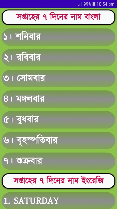 ➤➤ ইংরেজিতে ৭ দিনের নাম