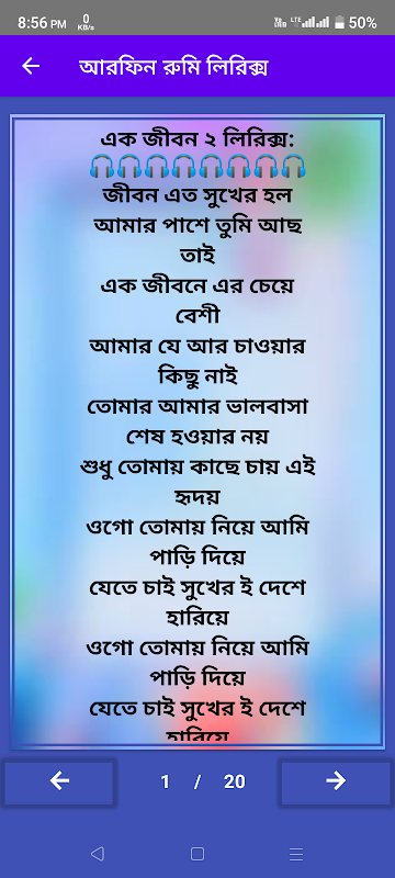 আমাদের এই অ্যাপে কণ্ঠশিল্পী আরফিন রুমির জনপ্রিয় লিরিক্স গুলো উপভোগ করতে পারবেন