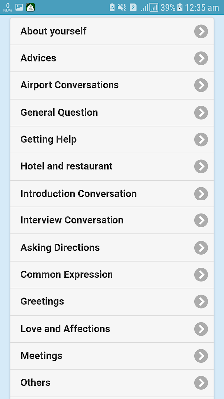 If you are looking for an app to improve your English Conversation skill and help you speak English more fluently, this app is suitable for you. You can listen to English conversations with normal or slow speed. This app also includes the list of most common words and phrases in English used in daily conversations. It will help you speak English fluently.