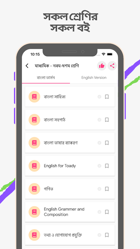 জাতীয় শিক্ষাক্রম ও পাঠ্যপুস্তক বোর্ড অনুমোদিত পাঠ্যবই নিয়ে আমাদের এই অ্যাপটি তৈরি করা হয়েছে। প্রথম শ্রেনী থেকে শুরু করে দশম শ্রেণীর শিক্ষার্থীদের বোর্ড বইগুলো সংযোজিত করা হয়েছে। বিজ্ঞান বিভাগ থেকে শুরু করে মানবিক বিভাগের সকল বই পাবেন এই অ্যাপে।