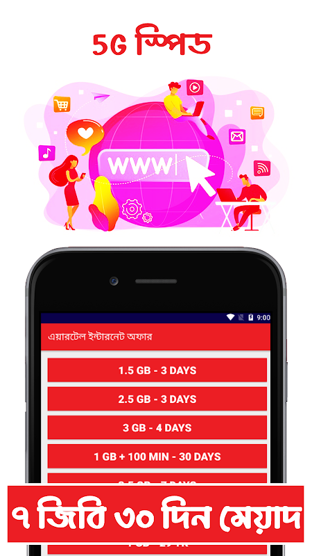 Ứng dụng này cung cấp các mẹo và thủ thuật sử dụng Internet miễn phí cho các nhà mạng di động Bangladesh. Tất cả chi tiết về gói cước Internet của nhà mạng di động Airtel đều có trong một ứng dụng. Khách hàng có thể dễ dàng mua bất kỳ gói dữ liệu & Gói cước Internet nào, đăng ký và kích hoạt. Ngoài ra, bạn có thể kiểm tra số dư dữ liệu còn lại của bất kỳ gói cước nào.