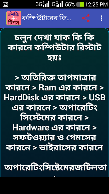 ল্যাপটপ ব্যবহার করে থাকে।কম্পিউটার বা ল্যাপটপ ব্যবহার কারি প্রতিনিয়ত এই যন্ত্রটির বিভিন্ন রকম সমস্যারসম্মুখিন হয়।অনেকে কম্পিউটারের খুটিনাটি সমস্যার সমাধান না জানার ফলে সার্ভিসিং সেন্টার বা কারো না কারো কাছে ধন্যা দিতে হয়। যারা এই সমস্যায় পড়ে থাকেন তাদের জন্য তৈরী করেছি আমাদের নতুন অ্যাপলিকেশন কম্পিউটার টিপস।