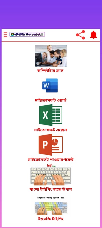 Các lớp học Microsoft Word, Microsoft Excel, Microsoft PowerPoint, Bangla Typing, English Typing và Computer
