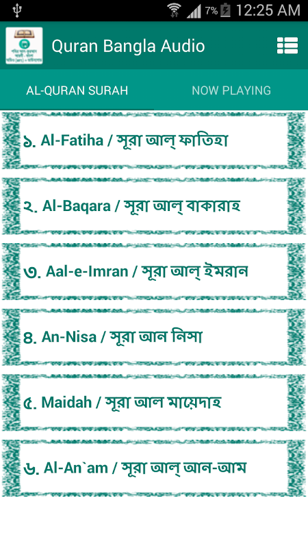 Thánh Al-Qur'an Ả Rập để Bangla Audio với Tải tùy chọn. (আল-কুরআন আরবী থেকে বাংলা তিলওআত অডিও)