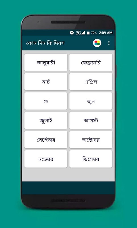 Thông tin APK কোন দিন কোন দিবস ক্যালেন্ডার