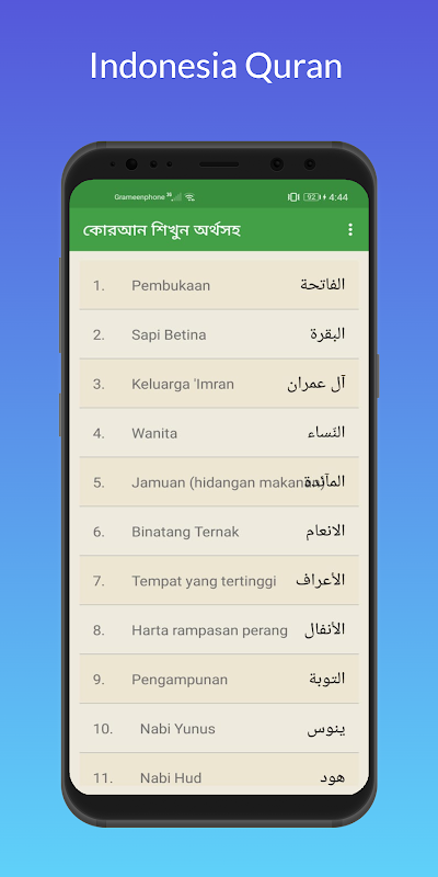 আল কুরআনের ১১৪ টি সূরাহ অর্থসহ বাংলা, ইংরেজি এবং ইন্দোনেশিয়ান ভাষায় পড়া যাবে,