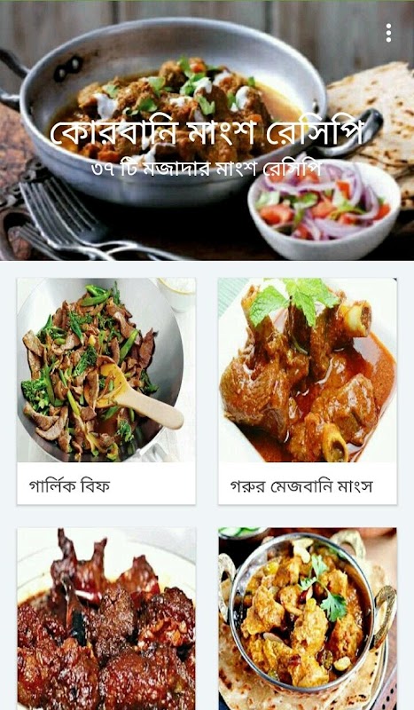 এপসটিতে গরু আর খাশির মাংশের লোভনীয় প্রায় ৩৭ টি রেসিপি দেওয়া আছে।