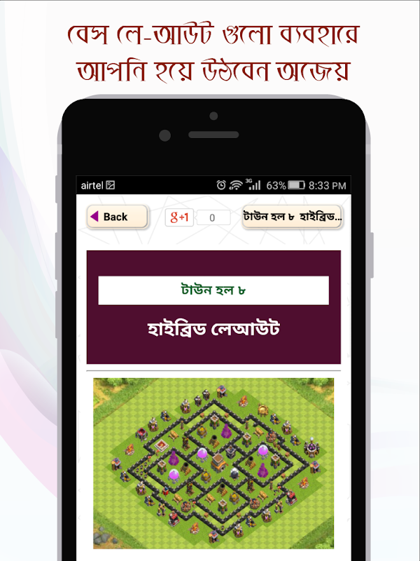 This is an Clash of clan base builder help app where best clash of clans base designs are given as screenshots.