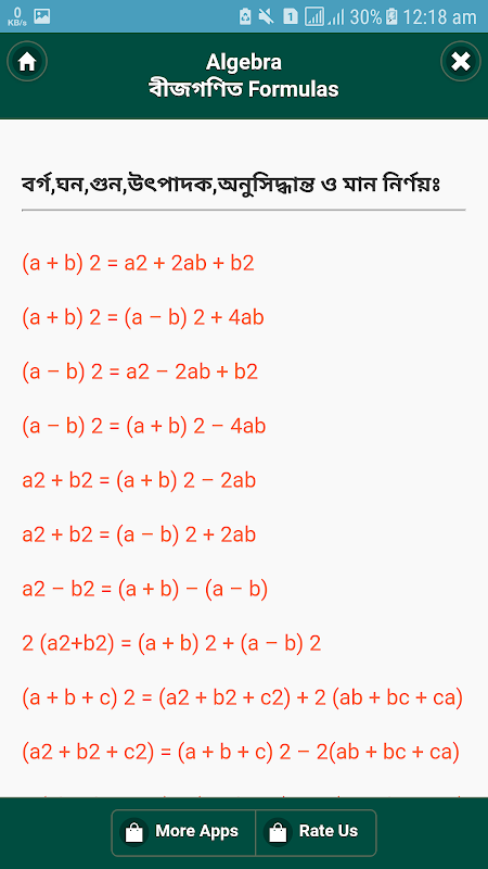 গণিত শিক্ষার জন্য যা যা সূত্র দরকার তা সব কিছৃ রয়েছে এই অ্যাপটিতে