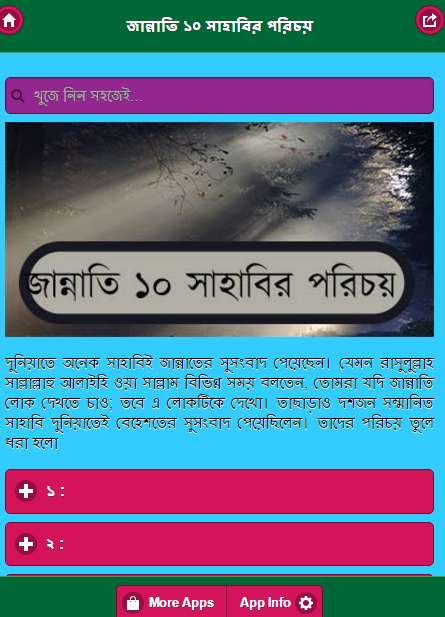 এটি একটি ইসলামিক বাংলা অ্যাপস্ । জান্নাতি ১০ সাহাবির পরিচয় ।
