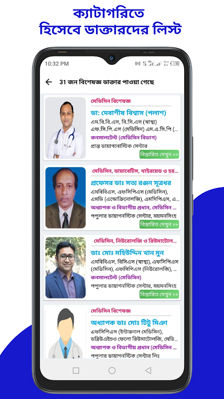 এই অ্যাপের মাধ্যমে আপনি ময়মনসিংহের বিশেষজ্ঞ ডাক্তারদের তালিকা পাবেন