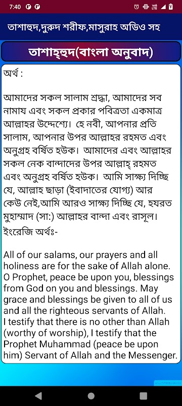 Phiên bản cũ của তাশাহুদ,দুরুদ,মাসুরাহ অডিও সহ