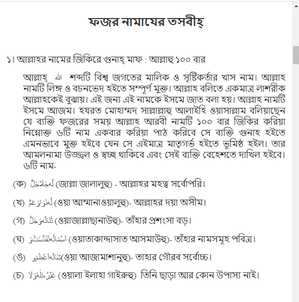 Nếu bạn làm bất kỳ hành động nào mỗi ngày, bạn sẽ nhận được zayah phù hợp, chúng đã được ghi lại rất đẹp trong ứng dụng này. Dưới đây là các ngày trong tuần mà những người hầu yêu quý của Allah sẽ đọc kinh Tasbeeh trong đó cầu nguyện theo ngày. Nó được viết bằng tiếng Ả Rập cũng như tiếng Bengali một cách thuần túy và chính xác. Nếu bất kỳ người hầu nào của Allah có thể nhận được sự thương xót của Allah sau khi đọc ứng dụng này, đó sẽ được coi là thành công của việc tạo ra ứng dụng này.
