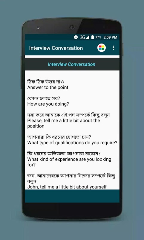 If you are looking for an app to improve your English Conversation skill and help you speak English more fluently, this app is suitable for you. You can listen to English conversations with normal or slow speed. This app also includes the list of most common words and phrases in English used in daily conversations. It will help you speak English fluently.