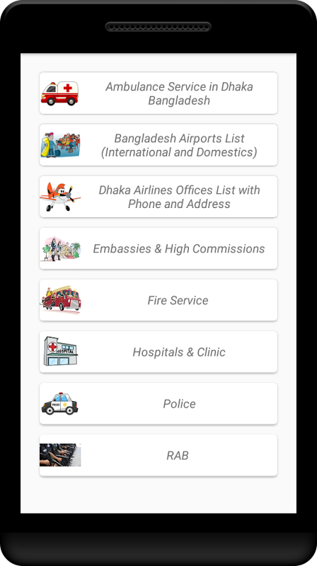 "র্যাব ফোর্সেস ", " বিভিন্ন দেশের দূতাবাস", "অন্যান্য " সহ আরো অনেক গুরুত্ব পূর্ন সার্ভিসের যোগাযোগ নাম্বার।