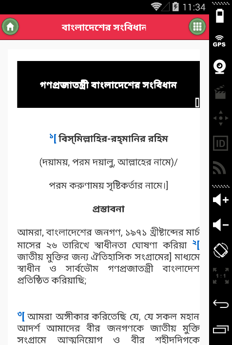 সম্পূর্ণ বাংলা ভাষায় গণপ্রজাতন্ত্রী বাংলাদেশ সরকারের সংবিধানটি (Constitution of Bangladesh in Bengali) পড়তে ও জানতে এই একটি অ্যাপই আপনাকে সাহায্য করবে। স্বাধীন দেশের নাগরিক হিসেবে আমাদের সবারই সংবিধানের ধারা সম্পর্কে ভালো ধারনা থাকা অত্যাবশ্যক।