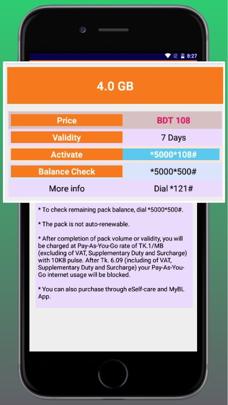 Thông tin APK বাংলালিংকের ইন্টারনেট প্ল্যান