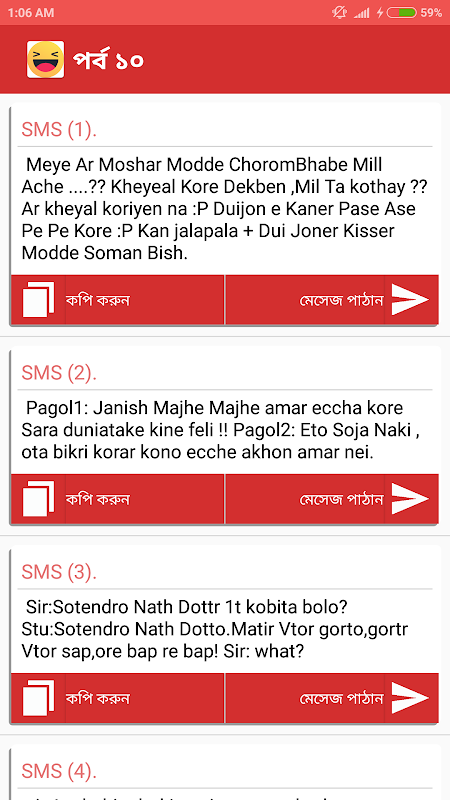 ১০ টি ক্যাটেগরিতে বাংলা ফানি এর এসএমএস ( Bangla Funny SMS ) নিয়ে এই অ্যাপ।