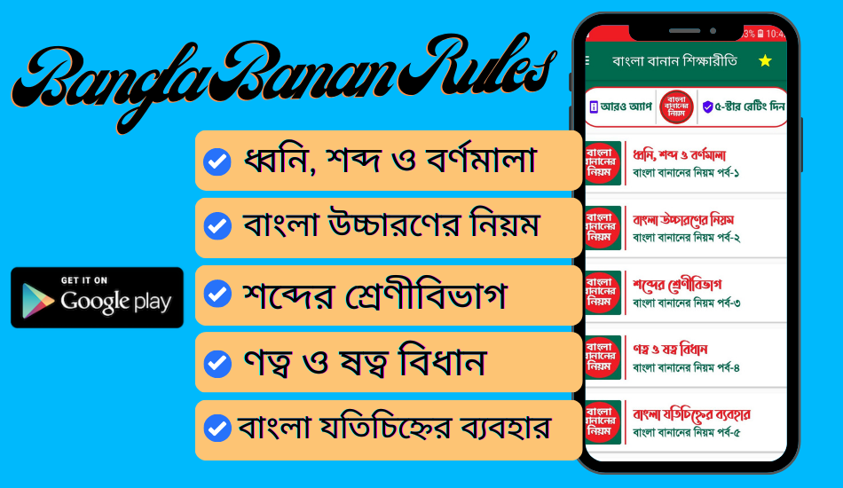 Chúng tôi đã thảo luận chi tiết về “Quy tắc đánh vần chuẩn Bangla của Học viện Bangla” (nghĩa của từ trong tiếng bengali) trong ứng dụng của chúng tôi. Ngoài ra Dr. Ngoài tập sách "Quy tắc viết tiếng Bangla" của Hayat Mamud, tôi đã thêm chi tiết về những cuốn sách hữu ích khác về chính tả tiếng Bengal. Hy vọng độc giả của chúng tôi sẽ được hưởng lợi từ ứng dụng này.
