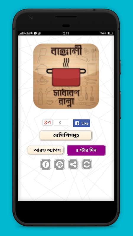বাঙালিরা যে খাদ্য রসিক,বাঙালির খাবারদাবার দেখলে বোঝা যায়। আর খাইয়ে জাত হিসাবে তা সর্বজন বিদিত! দেশে বা বিদেশে যেখানেই যাক না কেন, খেতে বসে খাবারের সঙ্গে নো কম্প্রোমাইজ! নিজেদের দেশের মত বিদেশের মাটিতেও জমিয়ে চলে বাঙালী রান্না - Bangla Recipe, রেসিপি রান্নাঘর বনেদিয়ানা । সেইসব রান্না ও রান্না রেসিপি,মাছে-ভাতে বাঙালি(রেসিপি) যা এপার বাংলা ওপার বাংলাকে ভুলিয়ে দেয় কাঁটাতারের যন্ত্রণা । বাঙালি রান্নাই হয়ে ওঠে উৎসবের মুখ্য আকর্ষণ! আমাদের এই অ্যাপটি সাজানো হয়েছে মজাদার সব বাঙালির খাবারদাবার এর বাঙালি রেসিপি নিয়ে।
