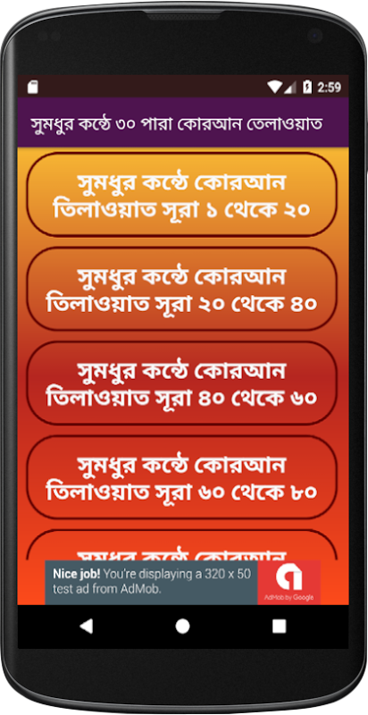 আমরা লিষ্ট আকারে ইউটিউব অ্যাপিআই এর মাধ্যমে পবিত্র কোরআনের তিলাওয়াতগুলি বাটন আকারে সাজিয়েছি। এতে করে আপনি যেকোন সময় সহজেই অ্যাপটি খুলে সুমধুর কন্ঠের কোরআনের তিলাওয়াত ও ৩০ পারা কোরআনের তিলাওয়াত দেখতে ও শুনতে পারবেন।
