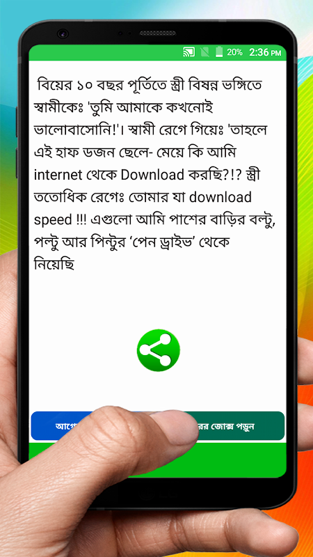 জোক্স মানে হাসি আর তাই পড়ে হাসতে হবেই কারন এখানে অনেক মজার বাংলা জোক্স আছে। তাহলে আর দেরী কেন? মজার মজার সব জোকস অপেক্ষা করছে আপনার জন্য। যেগুলো আমার ভালো লেগেছে আপনাদের ও ভালো লাগবে । সরাসরি শেয়ার করার সুবিধা আছে । এর জন্য রয়েছে শেয়ার বাটন । কষ্ট করে আর কপি পেস্ট করতে হবে না ।